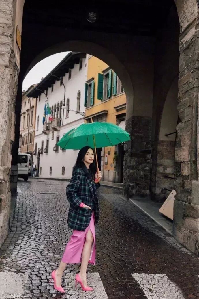 单纯从穿衣来说,很少有让编辑一眼惊艳的时候,但是这套黑色格纹西装+开衩桃红半裙让编辑看的移不开眼,太美了吧!!!