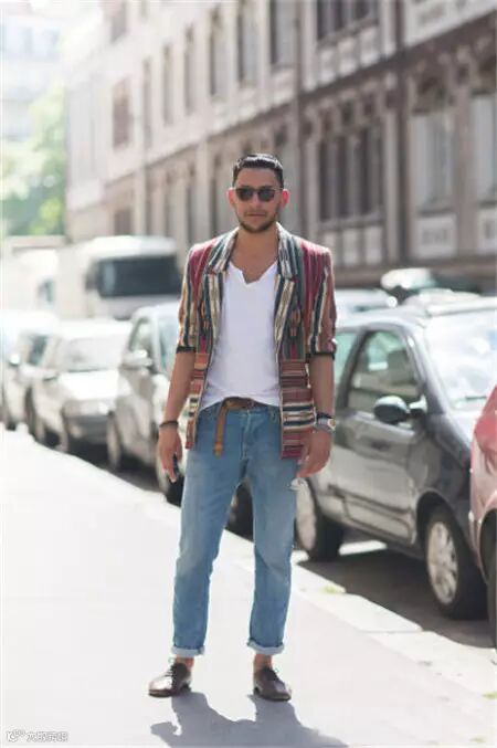 想要出挑,还得在图案上下功夫。浮躁夸张的图案不适合稳重大气又儒雅的男士,条纹的印花元素才是首选。选择规矩又有个性的印花方式T恤搭配基本款短裤,再选择一条亮色腰带装点气质,这样绝对让你与众不。