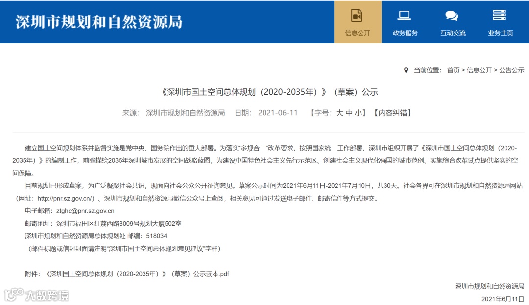 6月11日,深圳市规划和自然资源局公示《深圳市国土空间总体规划(2020-2035)》(草案)(以下简称《规划》)。据悉,深圳过去40年曾组织编制了三版总体规划,对促进城市快速有序发展发挥了十分重要的引领作用。