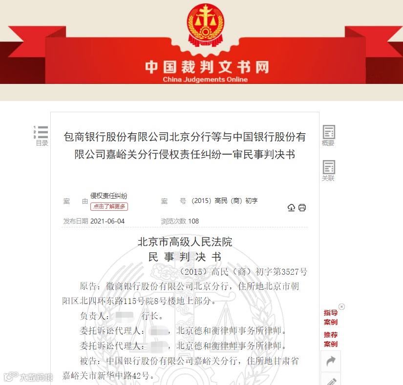 4年后,包商银行因重大信用风险被央行、银保监会接管,徽商银行也参与到包商银行的信用风险处理工作中,成为后者在内蒙古外机构的“接管人”。2020年8月,徽商银行北京分行作为包商银行北京分行的权利与义务承接机构变为该案的原告方,而包商银行退出诉讼。2020年12月,北京高院对该案进行了审理。