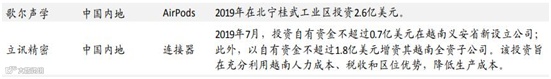 同时越南在税收方面也给予优惠。据蓝思科技披露,越南子公司的企业所得税税率为20%,自盈利之年开始,前2年免缴,其后4年减半计缴。