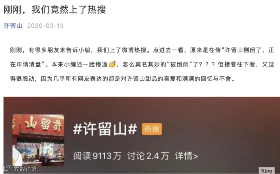 或许是人们对许留山的“时代滤镜”太厚,彼时许留山倒闭的新闻一时间还冲上了微博热搜,引发众多网友的集体怀念。