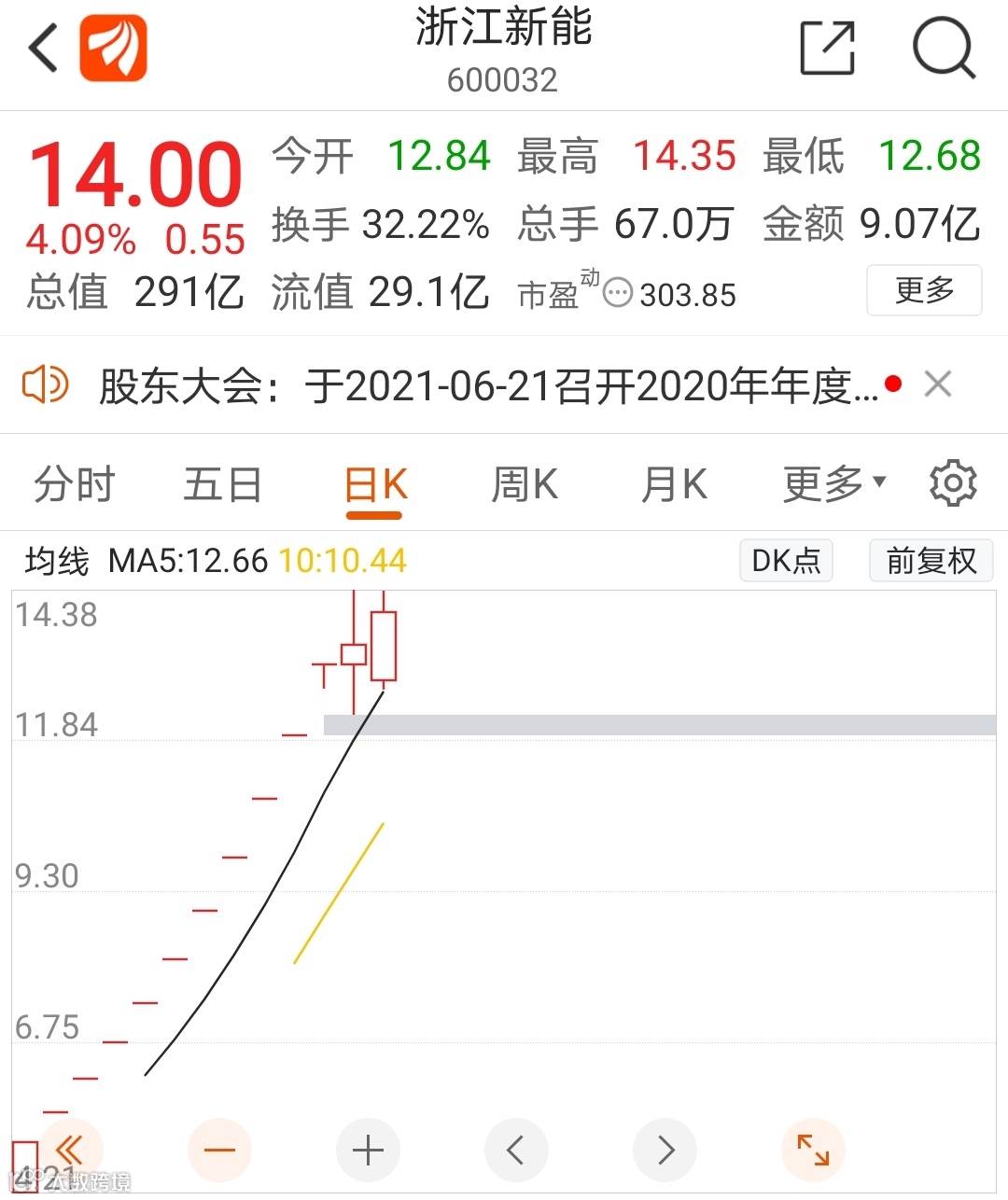 或许另一家刚上市不久的同行浙江新能(600032)的股价表现可以作为一个参考因素。这家公司今年5月25日上市以来,连续10个涨停,6月8日才首次打开涨停板,股价整体涨幅高达283%。