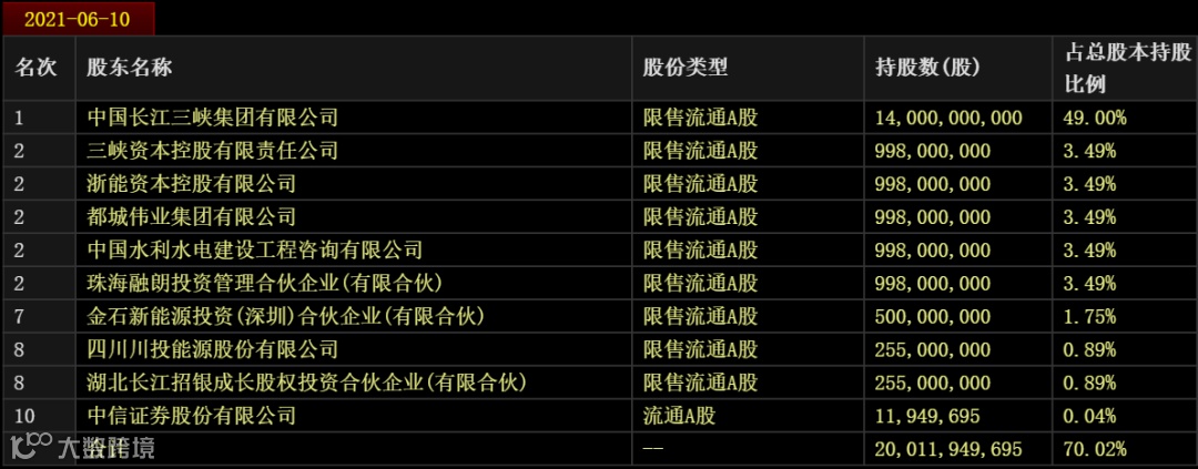 三峡能源十大股东