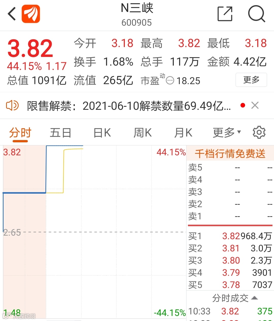 众多投资者瞩目的三峡能源(600905)今日敲钟上市。