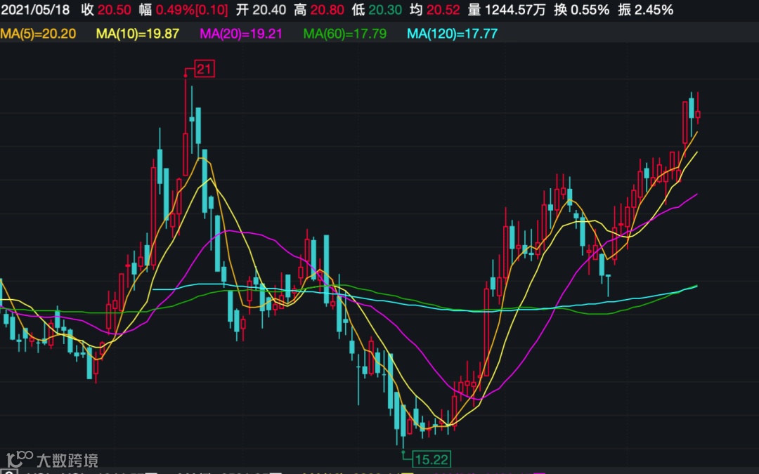 不过目前看来,中信股份这笔投资着实明智。K线图显示,中信证券H股在3月19日结束了下探磨底,此后便开始了一轮持续上涨行情。截至5月18日,中信证券H股收于每股20.5港元,区间涨幅已超过31%。