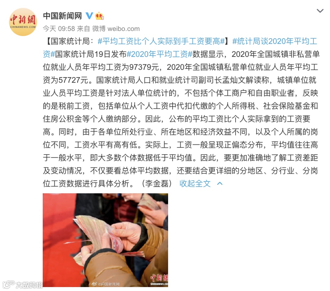 5月19日,国家统计局刚发布2020年平均工资数据,多个话题就冲上热搜↓