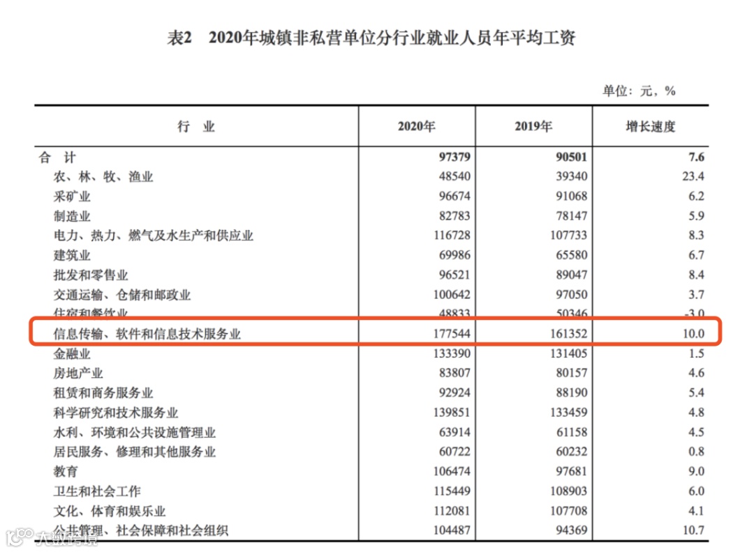 分行业看,IT业在城镇非私营单位和私营单位中,年平均工资都是最高的。