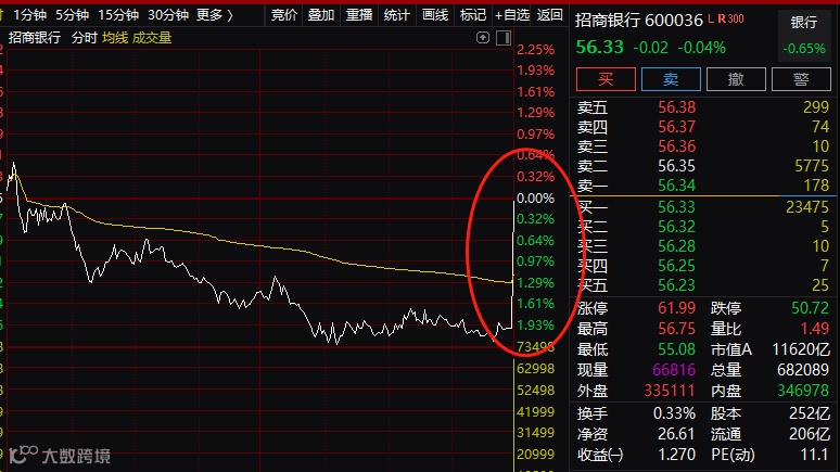 招商银行尾盘拉升至平盘,成交近4亿元。伊利股份、恒瑞医药等皆受到资金追捧。