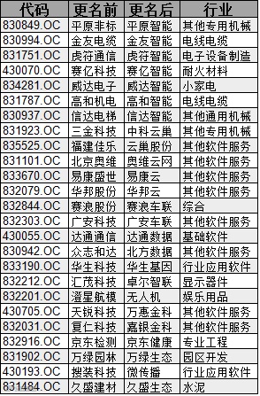 下面我们仅从股票名称的变更来看其得与失。