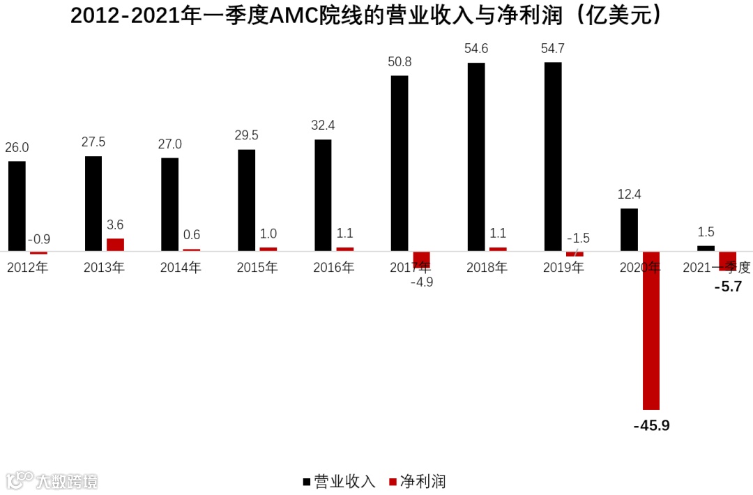 股债双双双走牛的AMC院线,几乎成为了华尔街分析师们心头最大的困惑。此前大量的看空报告指出,AMC院线仍有50亿美元的债务,由于新冠肺炎疫情导致的封锁措施继续,该公司的收入正在大幅下滑。2021年第一季度,AMC的收入为1.483亿美元,比上年同期下降了84.2%;净亏损5.67亿美元,甚至一度陷入破产边缘。