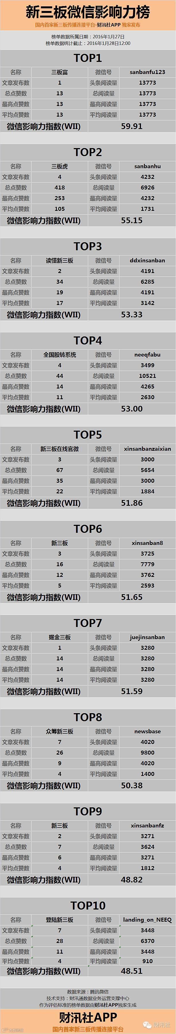 9、微信影响力指数(WII):根据公众号的头条阅读量、总阅读量、最高阅读量、平均阅读量、总点赞数、最高点赞数、平均点赞数等多项公开数据,进行指数加权运算得出,科学全面的反映公众号综合价值的一项指标。