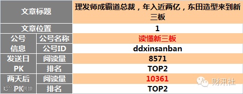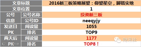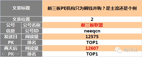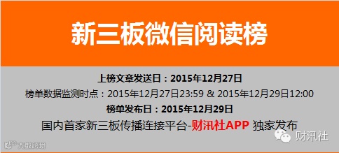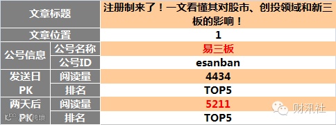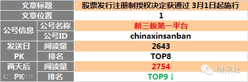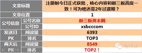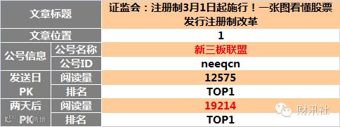 一日定座次,三日分高下。今天的“新三板微信阅读榜”中,《新三板PE机构只为圈钱并购?是主流还是个例》居【原创榜TOP10】榜首;《证监会:注册制3月1日起施行!一张图看懂股票发行注册制改革》夺【转载榜TOP10】榜魁。