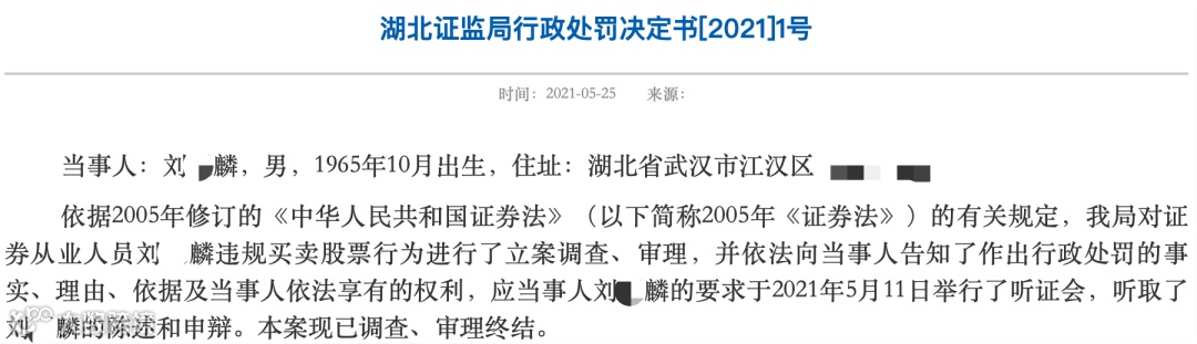 2009年7月至2019年7月,刘某麟就职于中国中投证券武汉香港路证券营业部,担任副总经理。而在2013年9月26日至2019年1月29日期间,刘某麟控制使用其弟弟“刘某”的证券账户累计交易了46只股票。