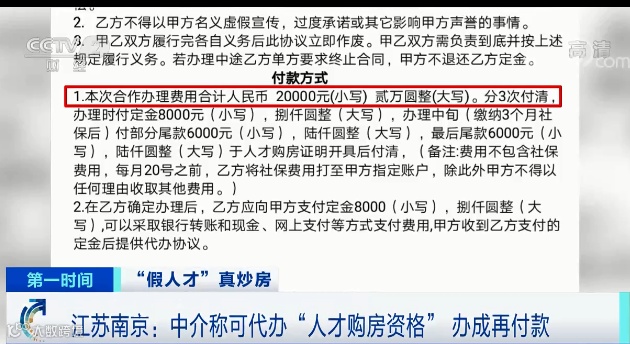 江苏南京:中介称可代办“人才购房资格” 办成再付款