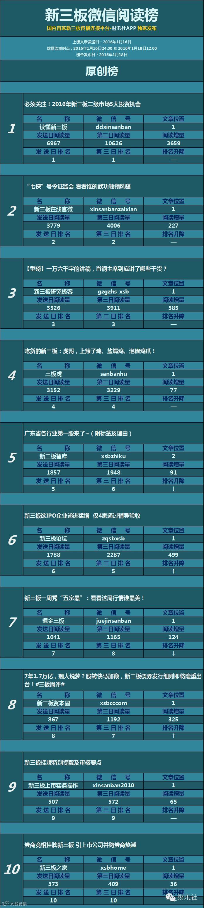 今天的《新三板微信阅读榜》上榜文章是上榜公众号于2016年1月16日发送的文章。