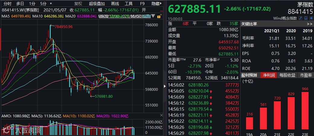 随着通胀预期的强化,市场结构是否也要彻底变天呢?从A股市场最近两个交易日的情况来看,似乎有这个苗头。A股茅指数连跌两天,跌幅皆超过了2%。