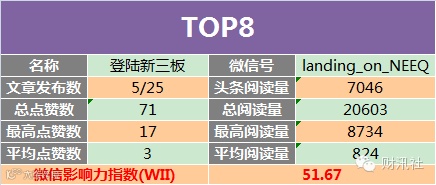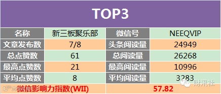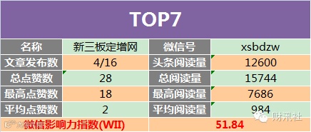 9、微信影响力指数(WII):根据公众号的头条阅读量、总阅读量、最高阅读量、平均阅读量、总点赞数、最高点赞数、平均点赞数等多项公开数据,进行指数加权运算得出,科学全面的反映公众号综合价值的一项指标。