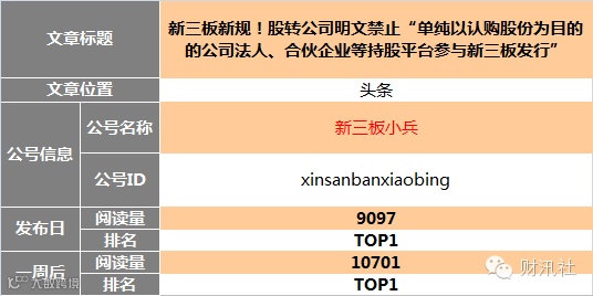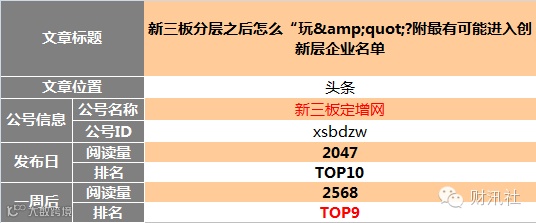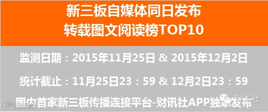 新三板自媒体转载图文阅读榜TOP10(12.03)