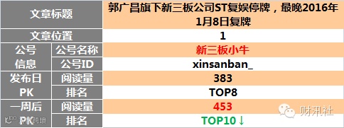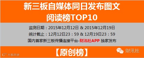 新三板自媒体同日发布图文阅读榜TOP10(12月20日)