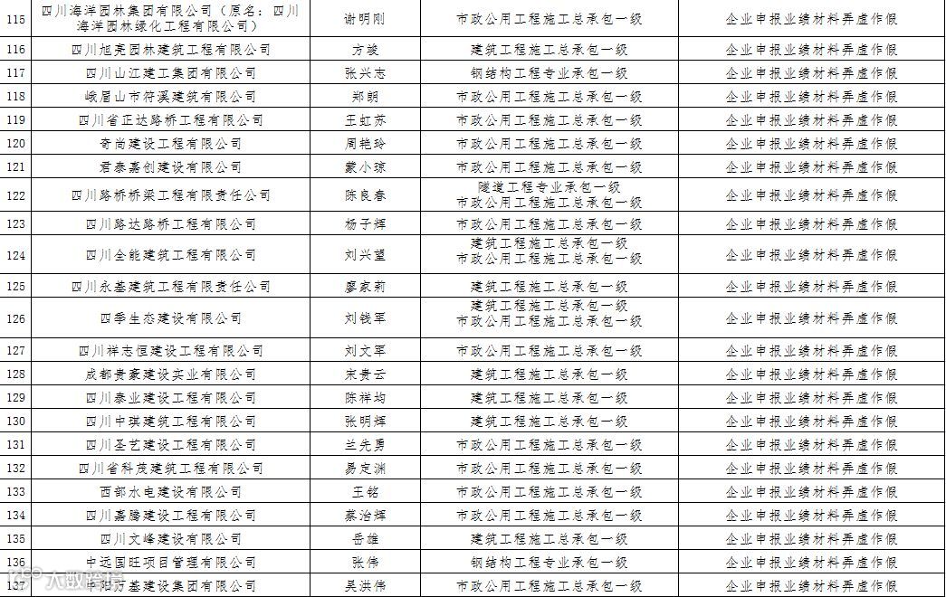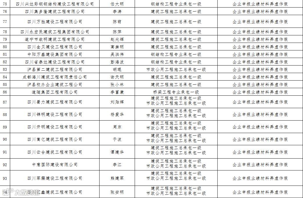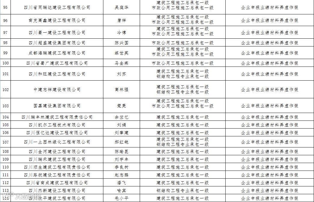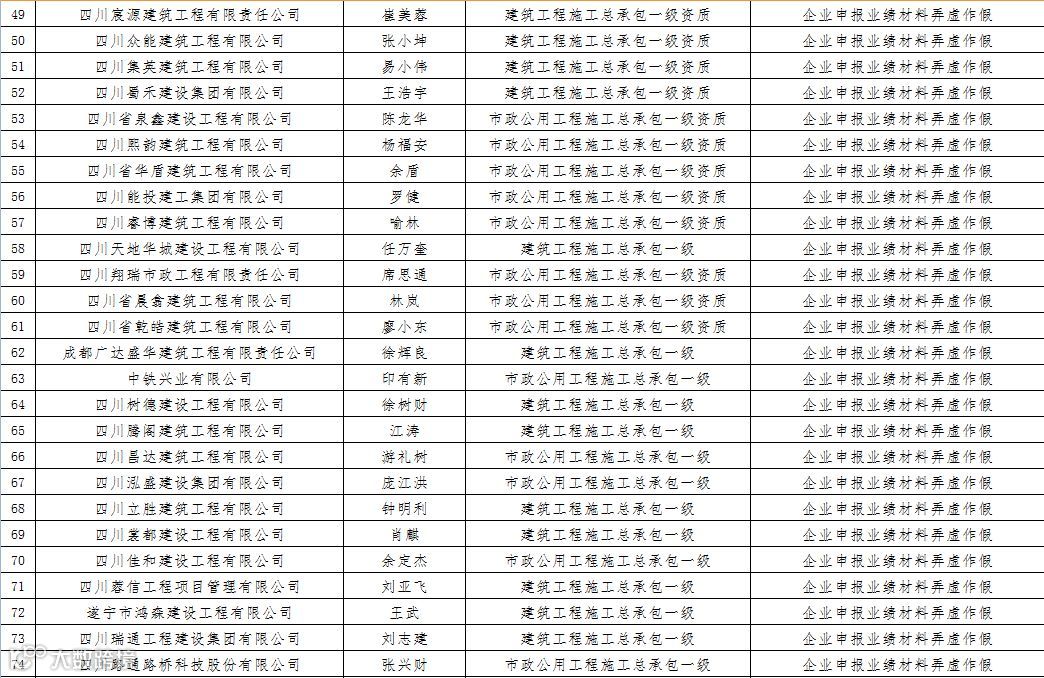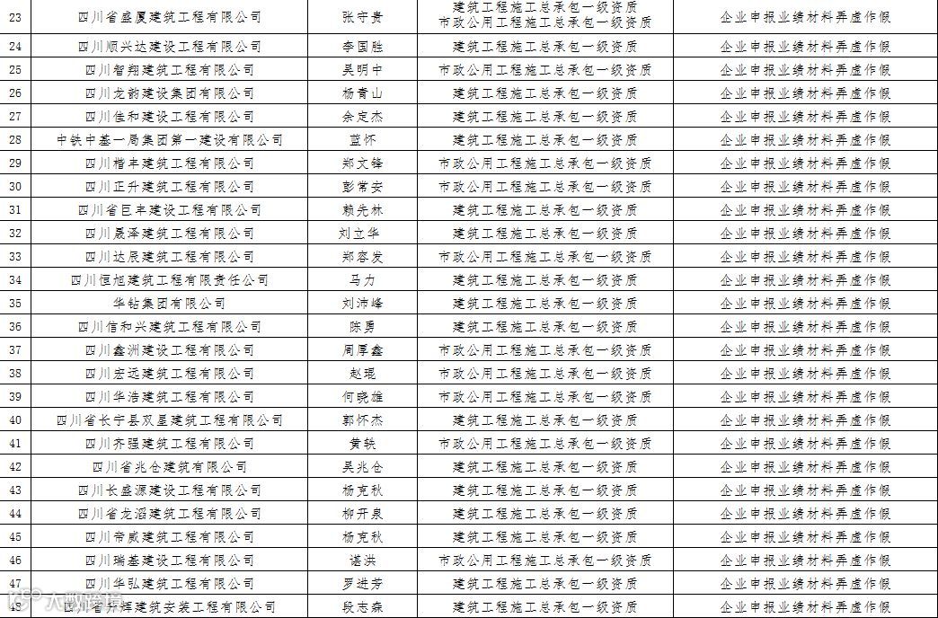3四川省建筑企业资质申报弄虚作假名单