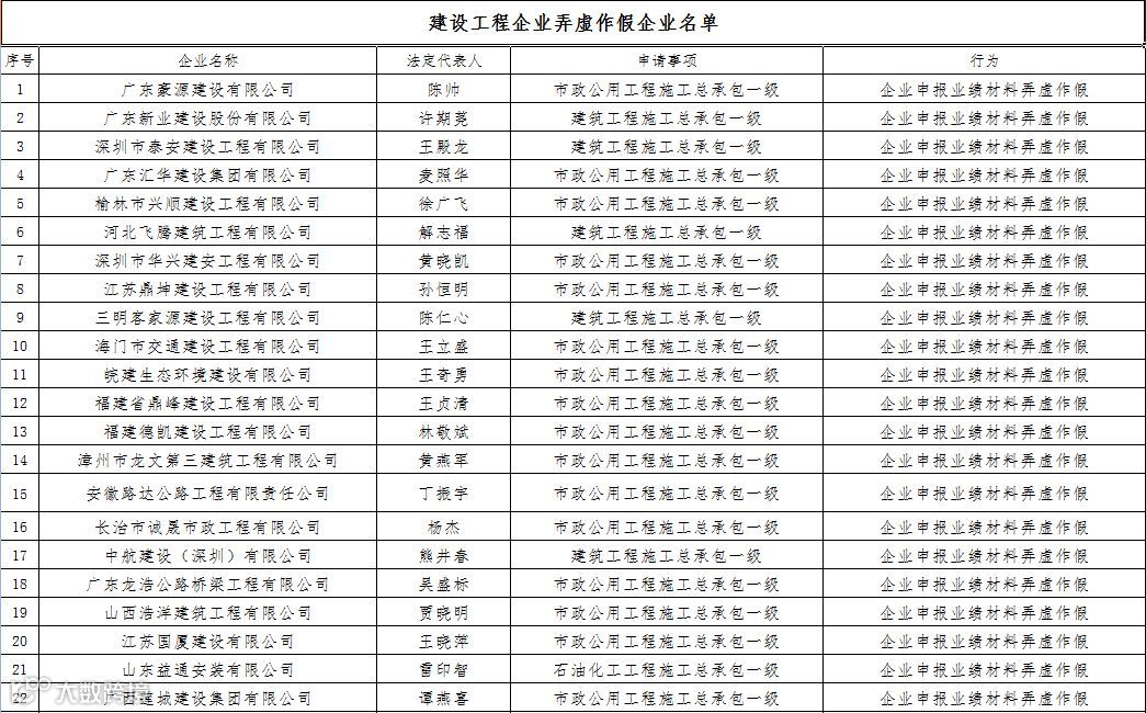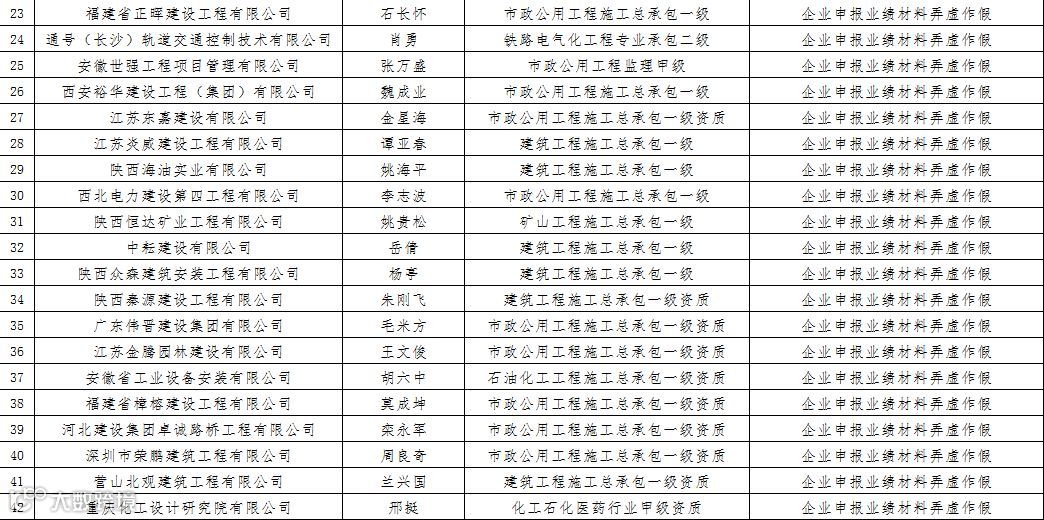 5建设工程企业弄虚作假企业名单