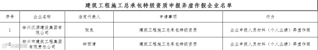 2建筑工程施工总承包特级资质申报弄虚作假企业名单