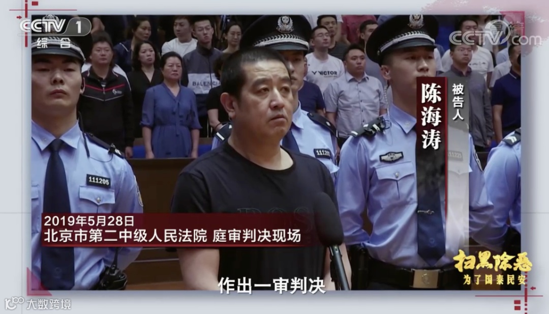 2019年5月28日,北京市第二中级人民法院对陈海涛黑社会性质组织犯罪作出一审判决,以组织、领导黑社会性质组织罪等14项罪名判处陈海涛有期徒刑25年,剥夺政治权利3年,并处没收个人全部财产。