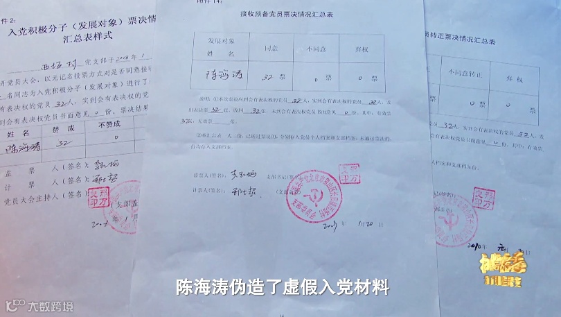 在时任长阳镇西场村党支部书记邢某的帮助下,陈海涛伪造了虚假入党材料,通过异地入党的方式,摇身一变,成为了一名正式党员。
