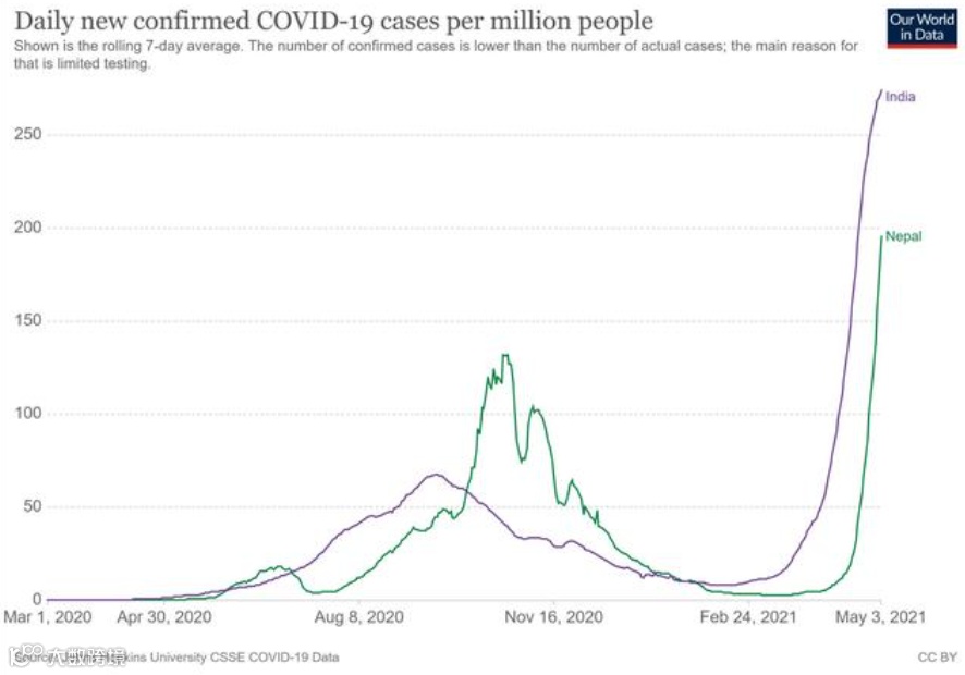 更糟糕的信号是,印度疫情正在向周边国家疯狂扩散。