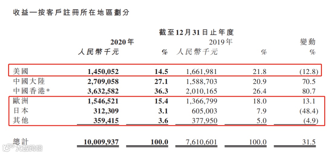 在香港业务收入中,思摩尔国际特别提到,香港所得收益是以再出口或转运为基准,完全没有产品于香港进行分销或出售。公司向香港注册客户销售的产品,约96.3%( 2019年为93.4% )发往美国。