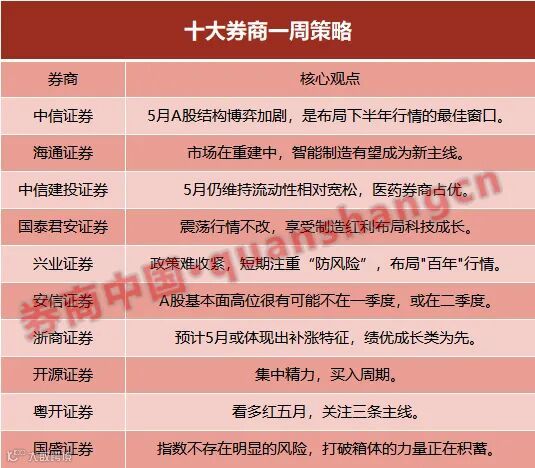 此前在4月初提出核心资产进入性价比区间,首推医药和白酒,上述行业亦有不错表现。中信建投证券预期5月仍然维持流动性相对宽松, 2021Q1医药行业整体持续占优。海外疫情扩散和疫苗的普及仍会持续支持生物医药行业。除此之外,券商板块逐步进入估值盈利和合理匹配区间,建议投资者关注。