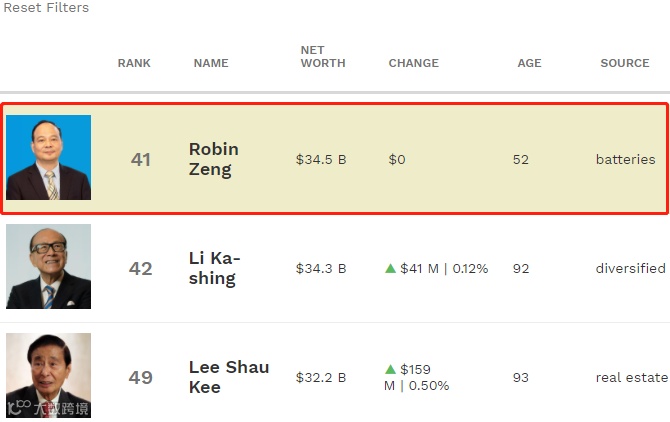 福布斯实时富豪榜数据显示,宁德时代董事局主席曾毓群身家345亿美元,跻身香港首富。