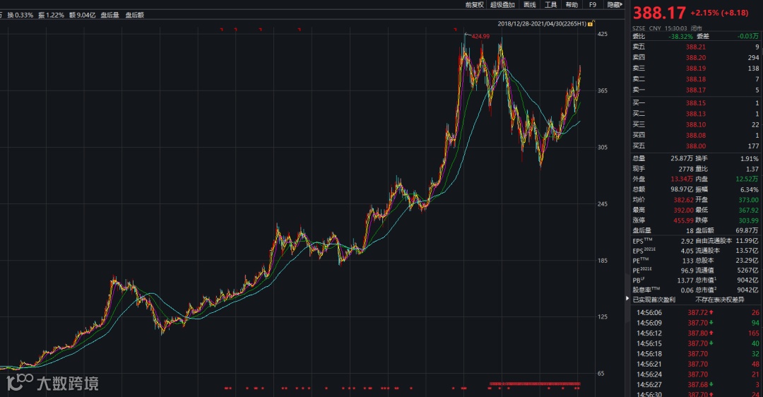 而Wind数据显示,近一个月(3月29日-4月29日)宁德时代的股价已经从阶段性底部上涨了21.16%。当前379.99元的股价,已经逼近年初的历史最高价。