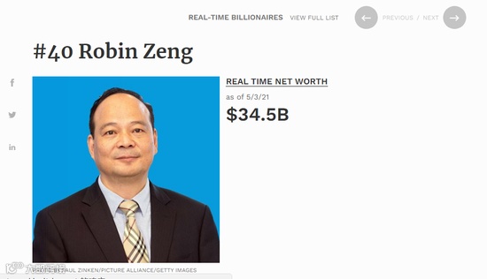 5月4日下午,香港首富换人了!福布斯实时富豪榜(Real Time Billionaires)显示,宁德时代(300750.SZ)董事局主席曾毓群登顶香港首富。