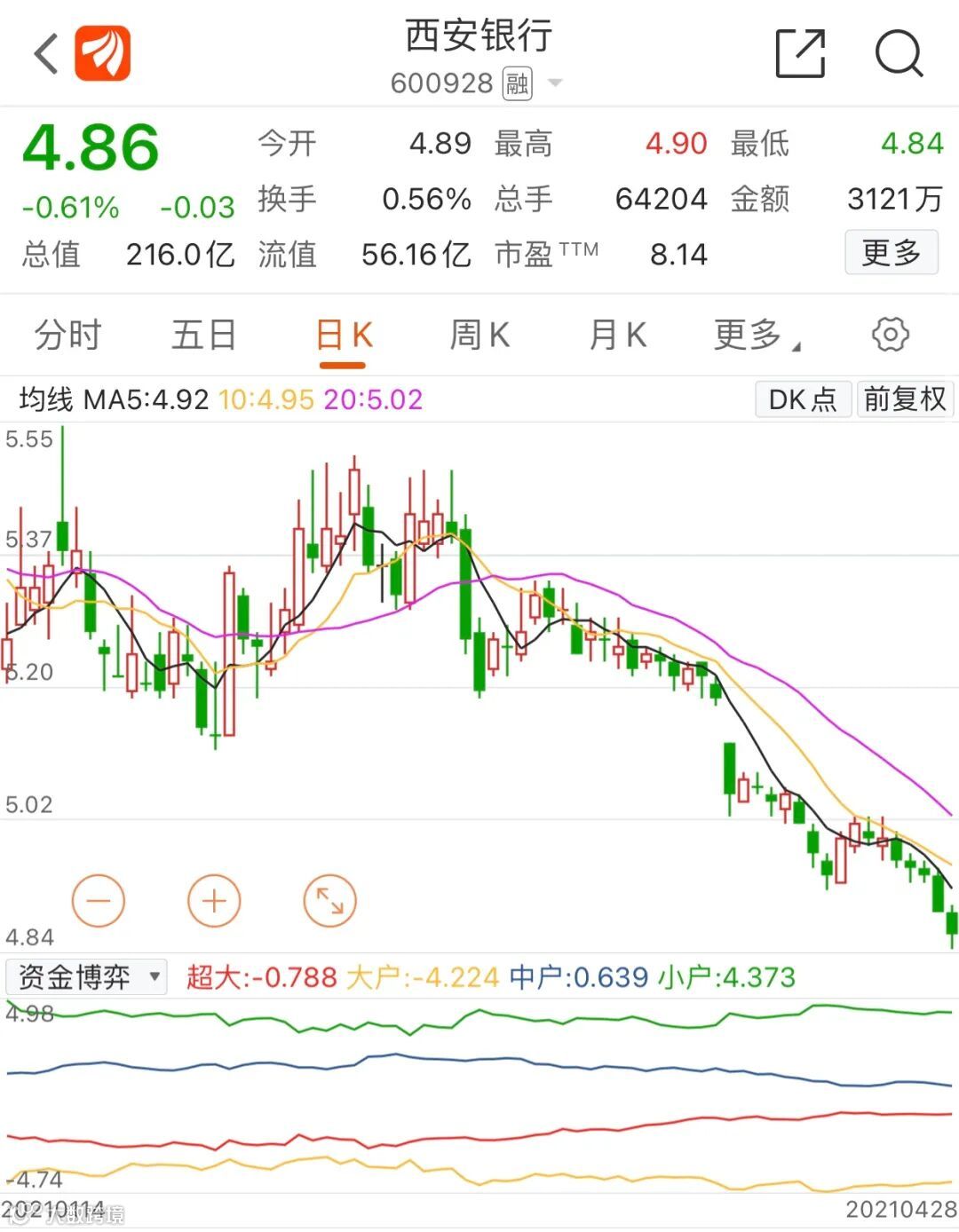 截至28日收盘,西安银行报收4.86元,总市值216.0亿元,市净率0.84。今年以来西安银行股价下跌11%。