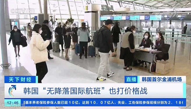 除了国内航线,眼下,韩国“无降落国际航班”的竞争也愈发激烈。虽然这类航班只是前往其他国家低空飞行一圈再回到韩国,但由于可以“出国旅行”,还能购买免税品,近期上座率超过了73%。机票价格也降至最低约合人民币360元。