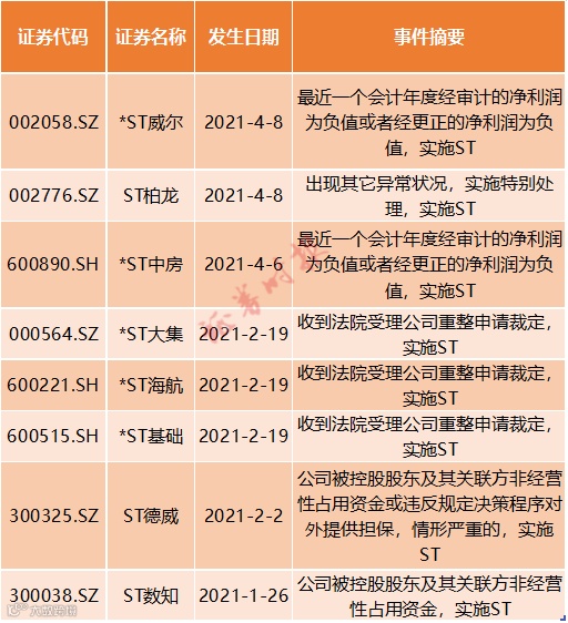 Wind数据显示,2021年以来,已有包括ST数知、ST德威、*ST基础在内的8家公司被实施ST。