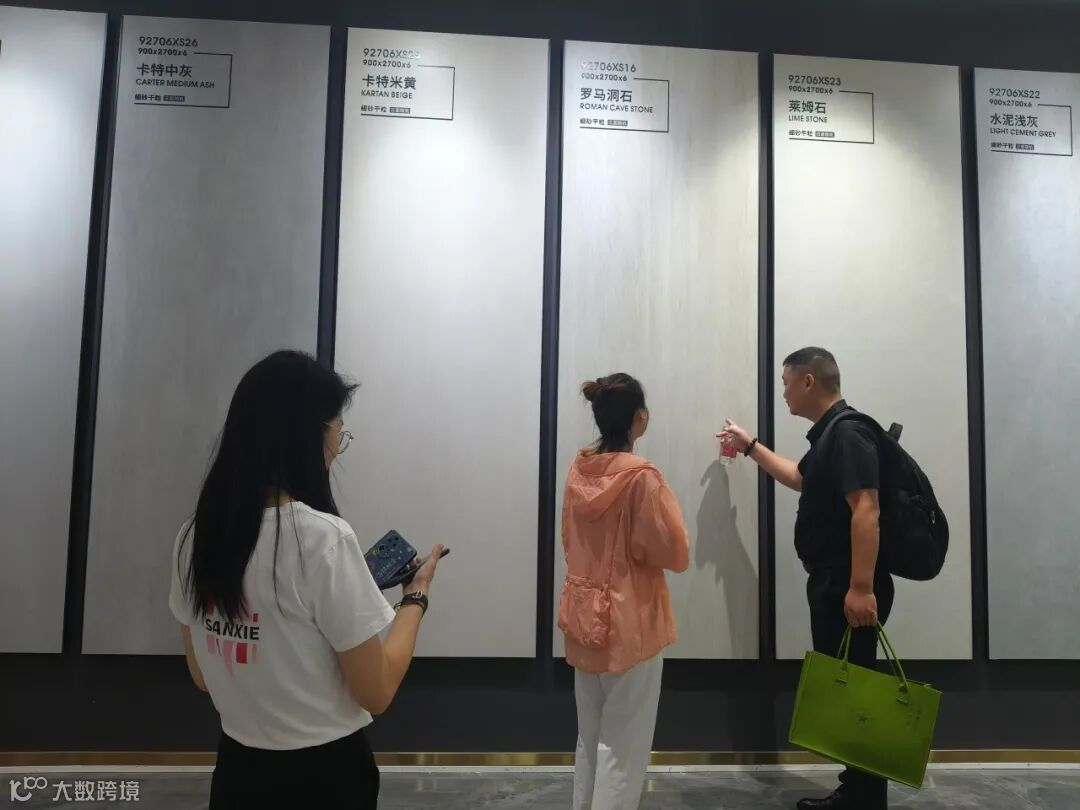 贝奈特岩板花色繁多,质感微妙。展厅内除了900×1800MM规格岩板展示外,还有750×1500MM、800×2600MM、900×2700MM、1200×2400MM等多种主流岩板,吸引着众多客商驻足鉴赏。