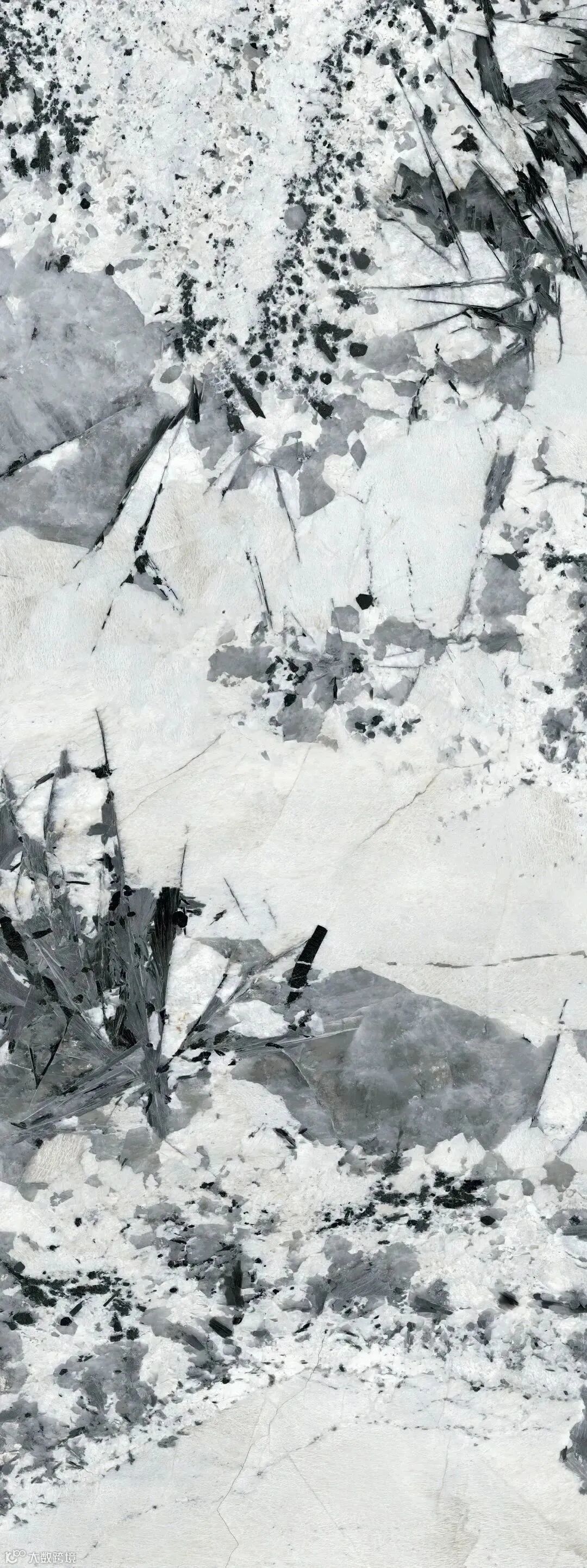 风霜尽历的山岩,挂着冬日里的一抹初雪,