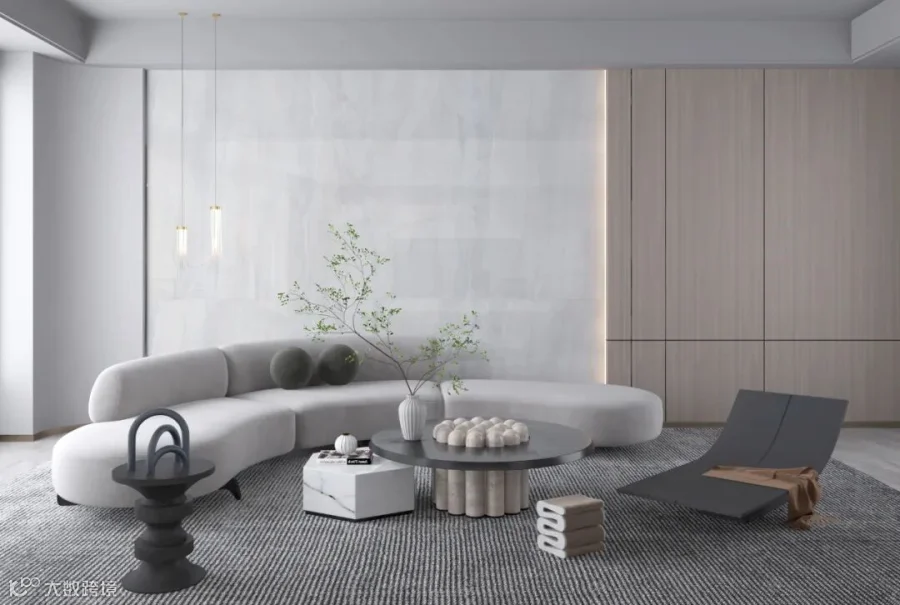 雪是有傲骨的,清冷,淡然。傲雪的版面纹理,就像大雪在纷飞时极力地想要掩盖山川的锋芒,傲意凌然,绿植与软装的柔化点缀,烘托出气度不凡的家居格调。