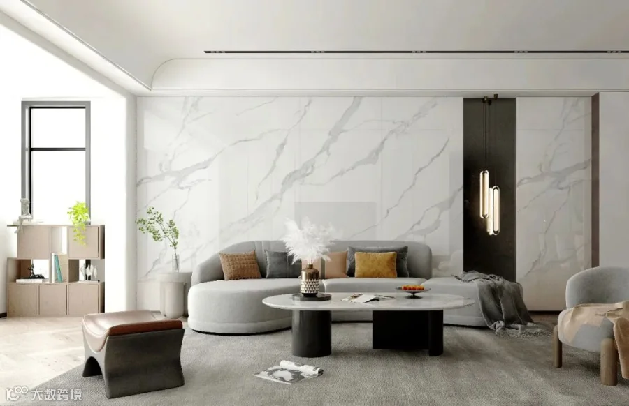 冰川白玉,有着白玉般极致干净的通透质感,也有暮春时冰川初融的层次变化,给人震撼的视觉感受。作为背景墙,与简练的室内装饰搭配,拉阔了视觉的广度,构造一个更为纯粹的空间环境。