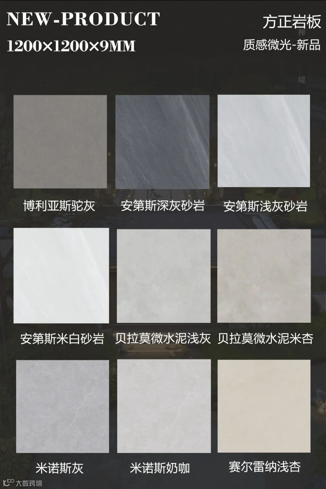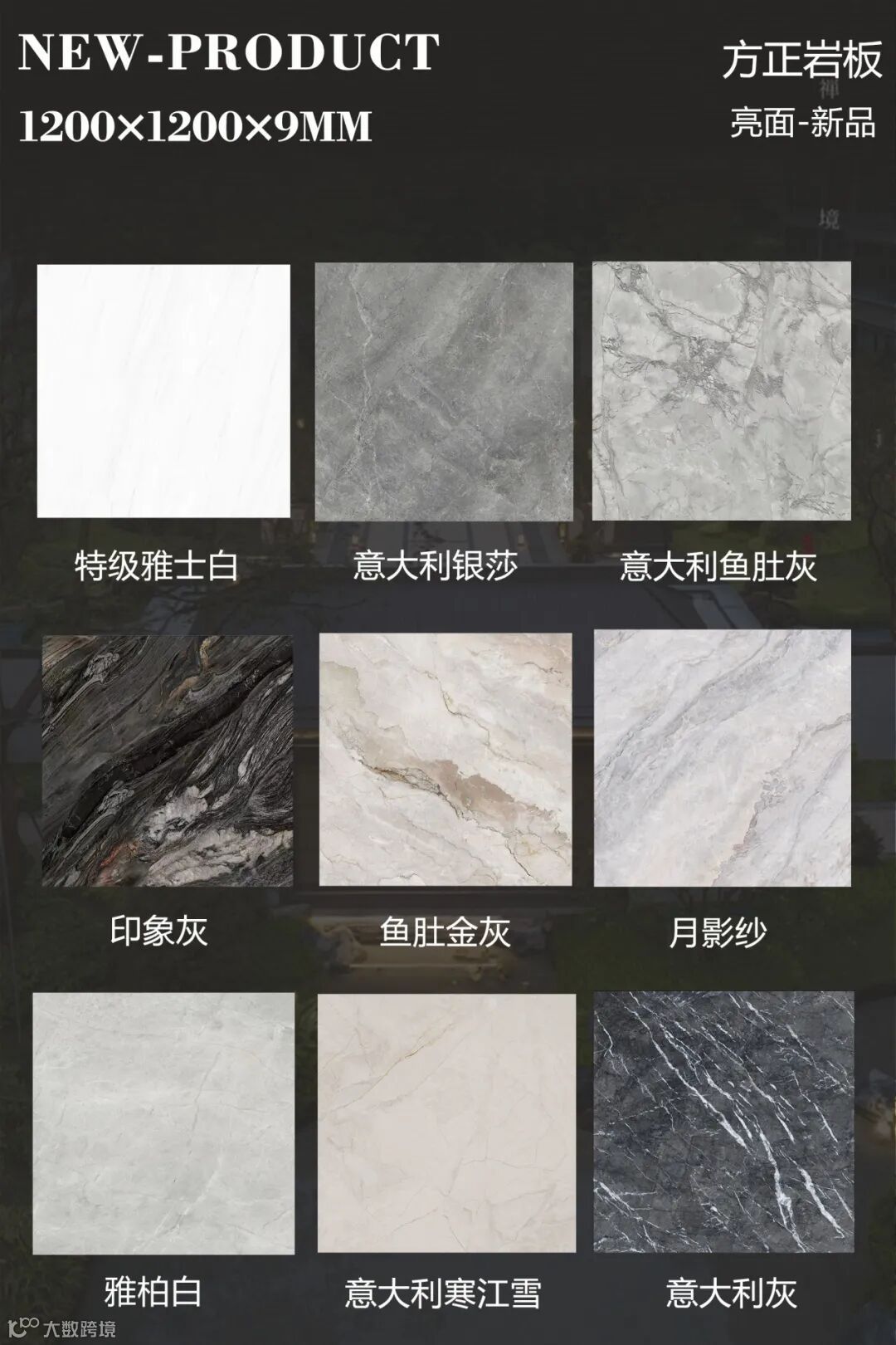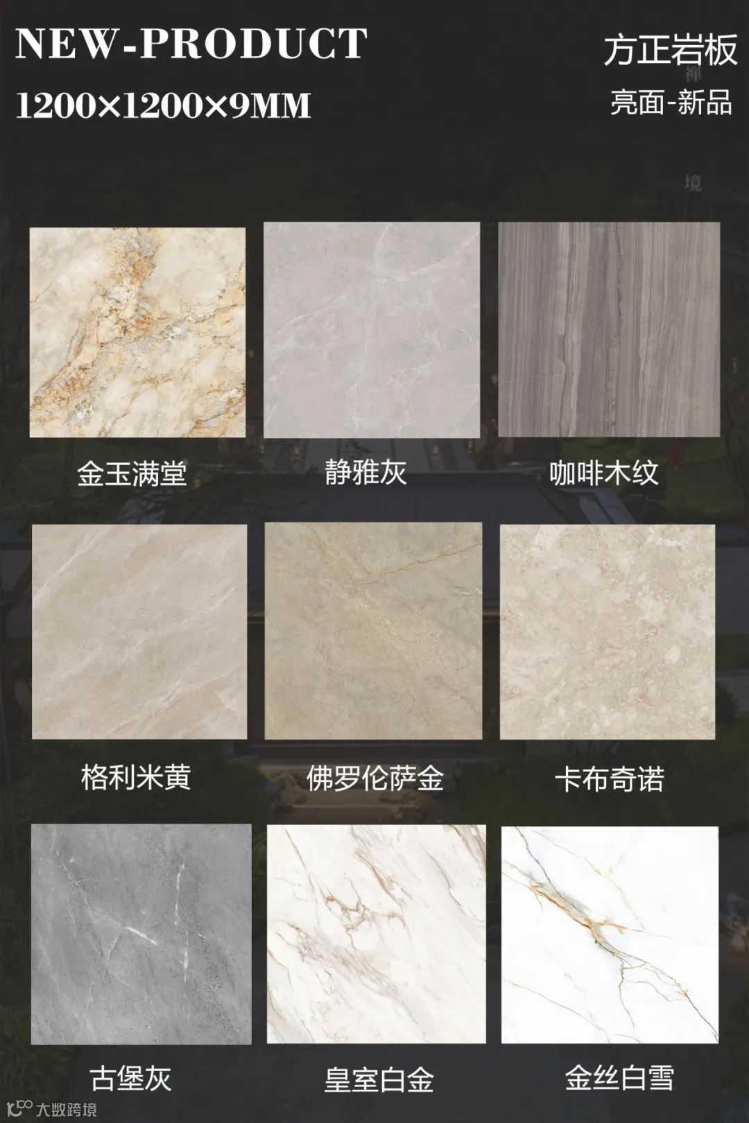 1200×1200MM方正规格岩板在国内掀起一阵潮流之风,是2024最流行的规格之一,在国外市场也十分风靡。
