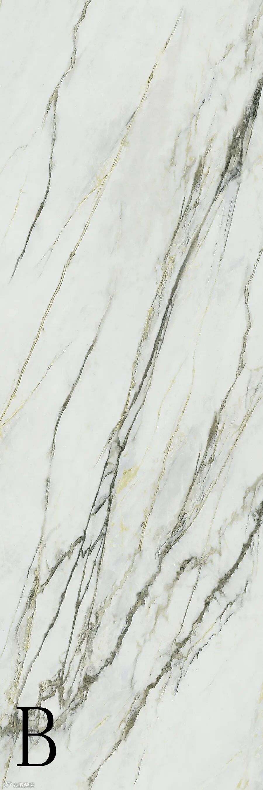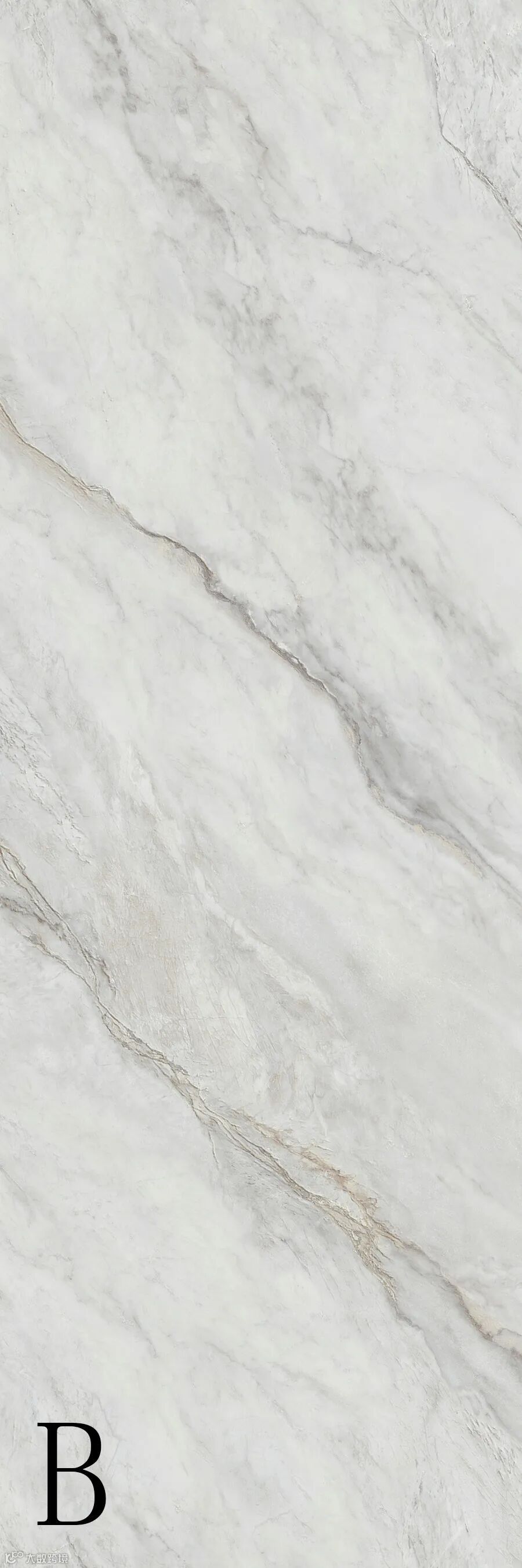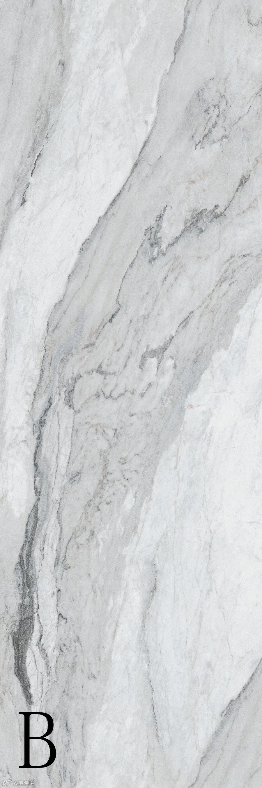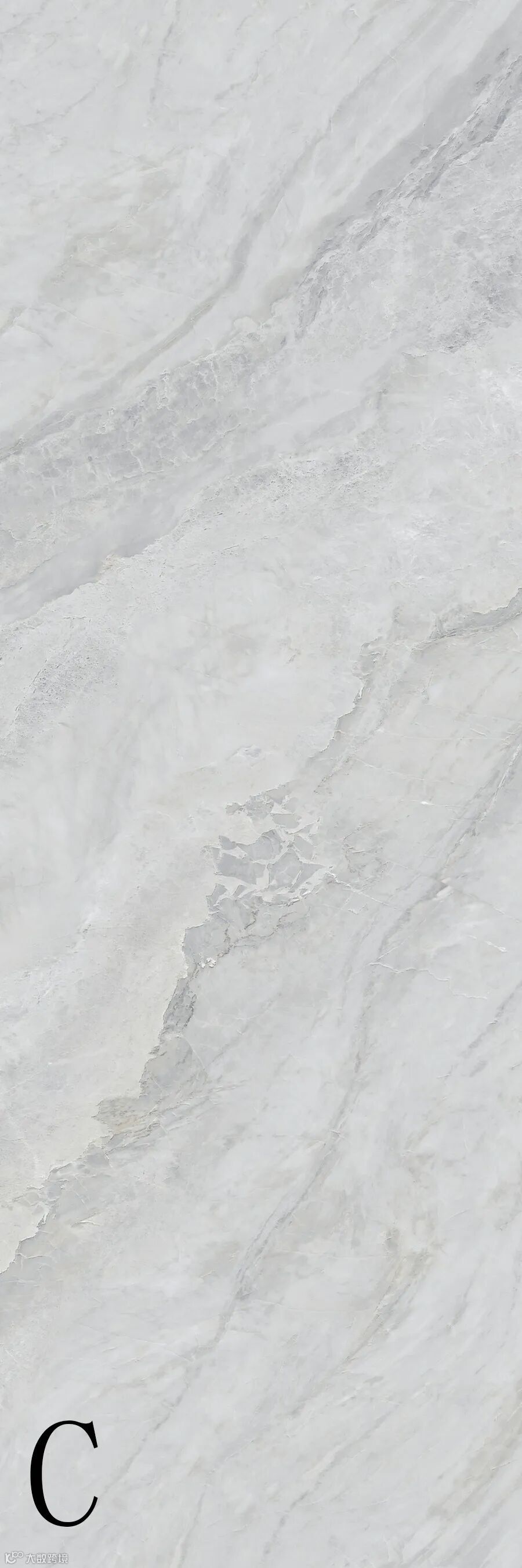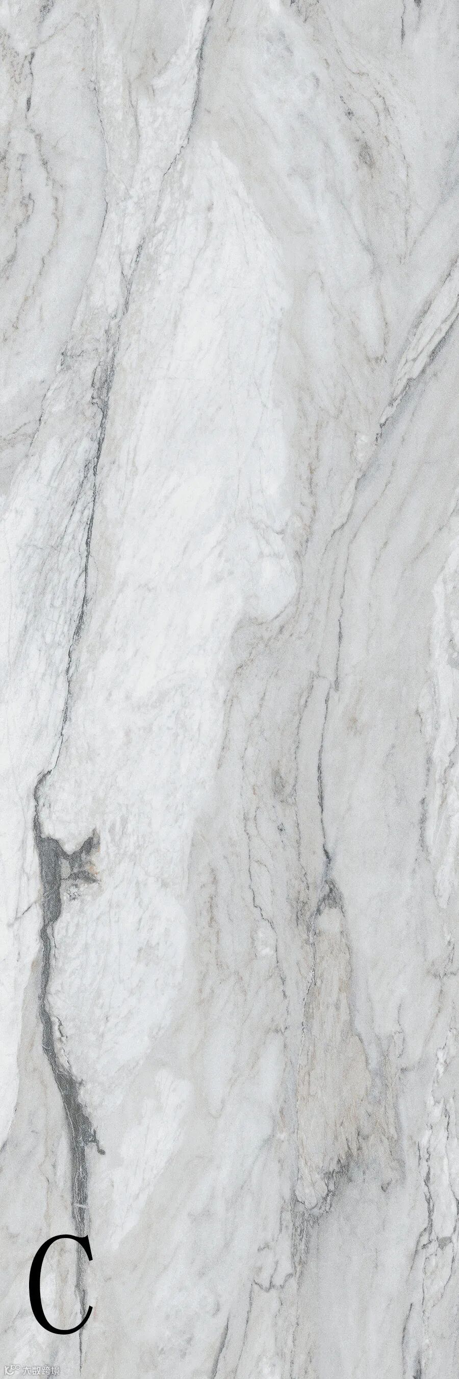 浅灰石脉交错于纯白的岩面上,