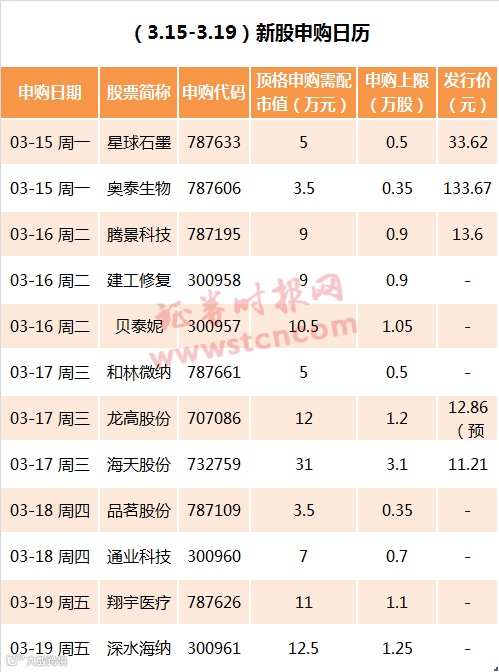 根据初步安排,本周(3.15-3.19)A股市场将迎来12只新股申购,单周可打新股数量再创年内新高。