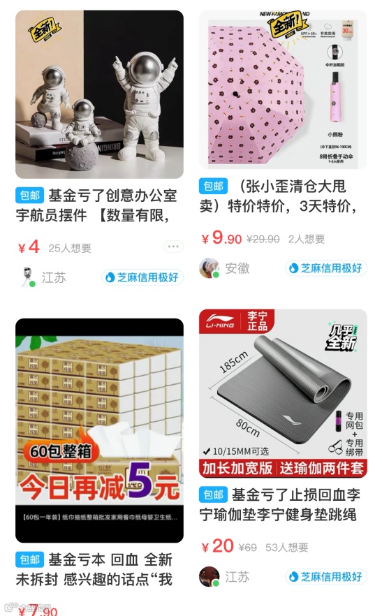 “基金亏了,只为回血”——成为闲鱼上近期火热的卖货开场白。
