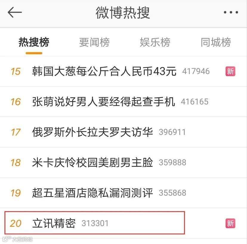 A股今天一片红彤彤,苹果产业链龙头立讯精密却跌上了微博热搜榜。