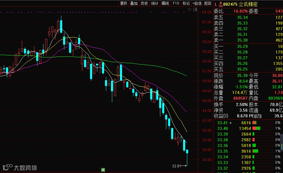 近期,苹果产业链龙头立讯精密持续下跌,今天上午更是跌上了微博热搜榜。