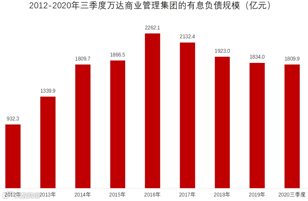 与此同时,万达商管背负着巨额债务。据Wind数据显示,2021年,万达商管到期的公开债务为367.5亿元,截至2020年三季度末,万达商管的有息负债规模为1809.9亿元。