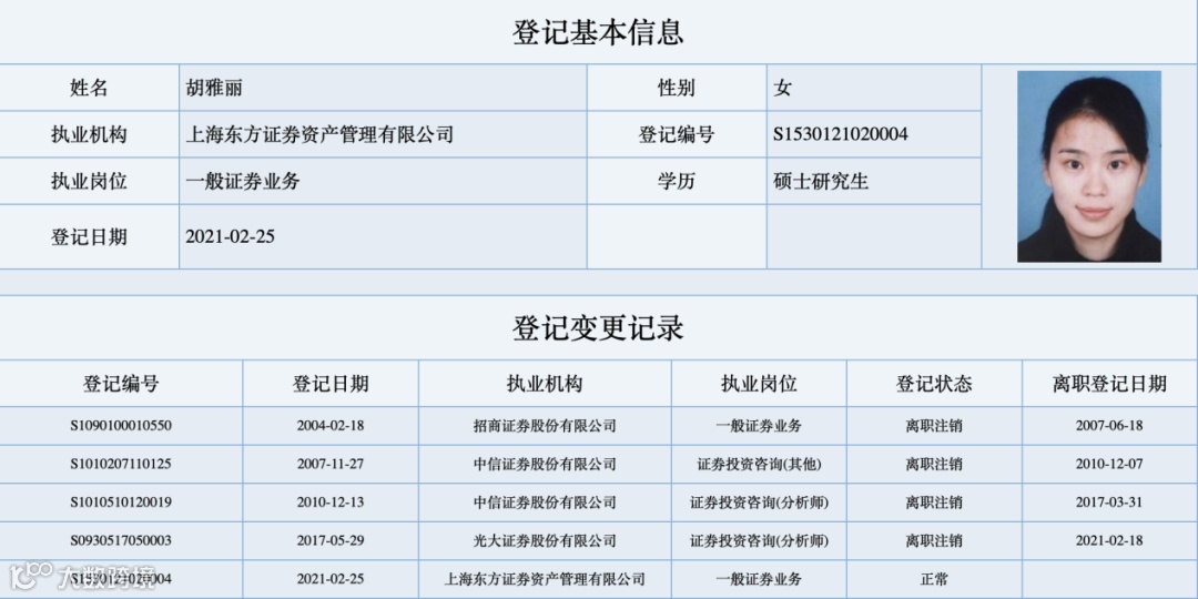 最新披露的信息来看,原光大证券研究所所长胡雅丽任公司总助、权益研究部总经理。中证协官网数据显示,胡雅丽的执业机构2月25日已经变更为上海东方证券资产管理有限公司。